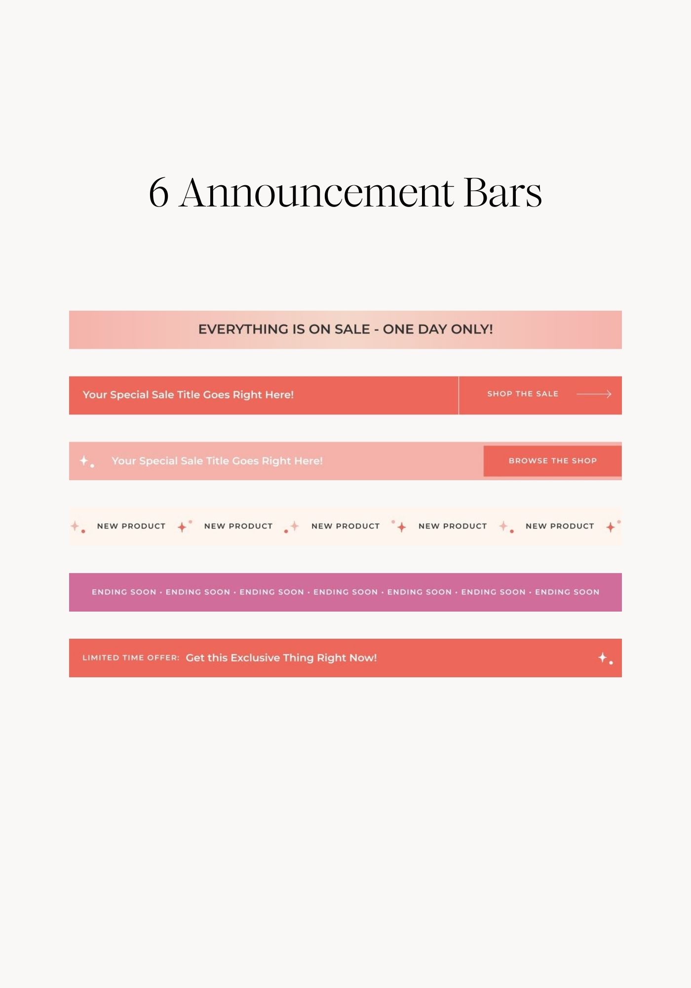 6 Announcement Bars – Grab attention with limited-time offers, updates, and important messages that stand out at the top of your email.