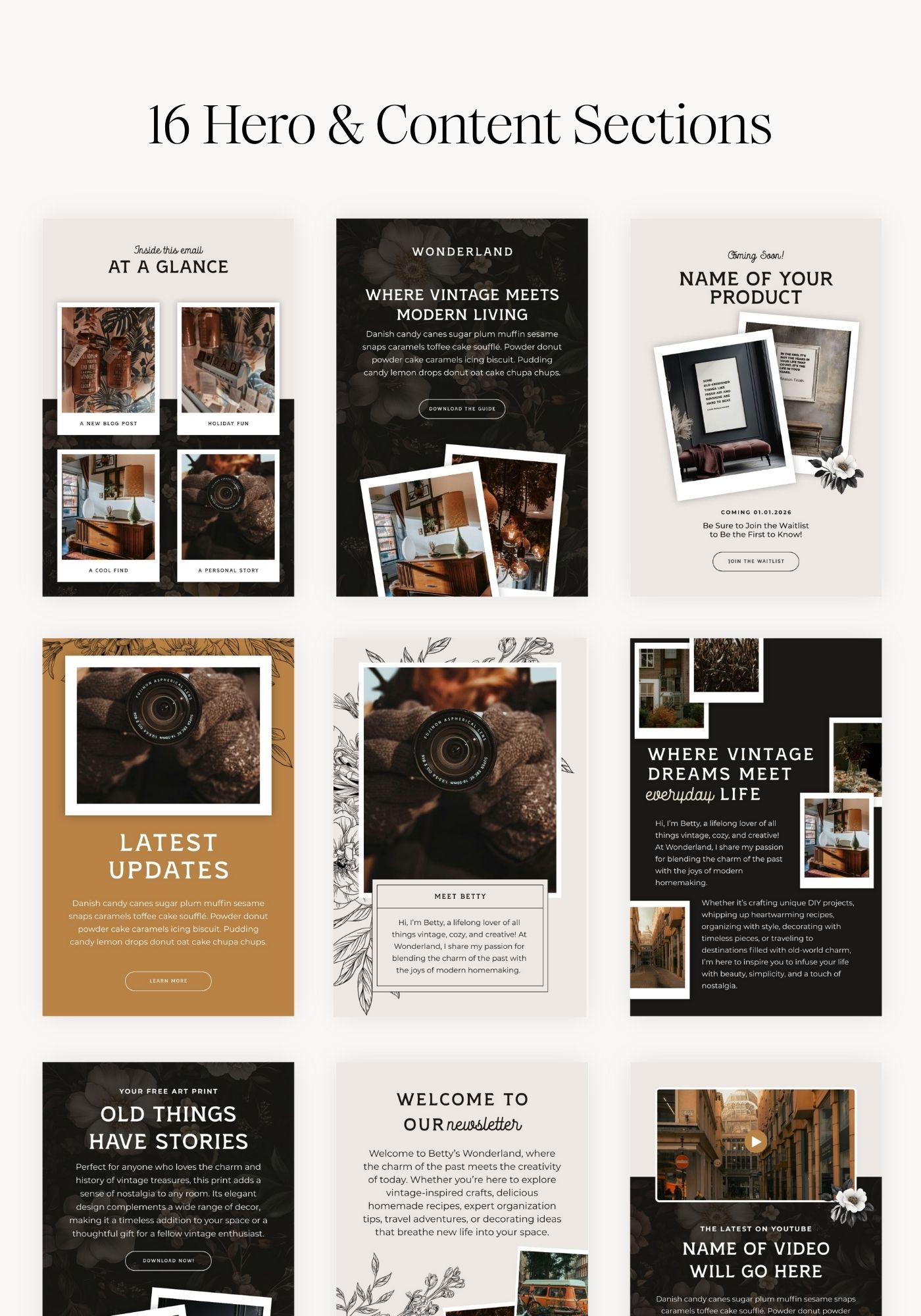 - 16 Hero & Content Sections – Mix and match bold hero images, text blocks, and layout options to build gorgeous email designs.