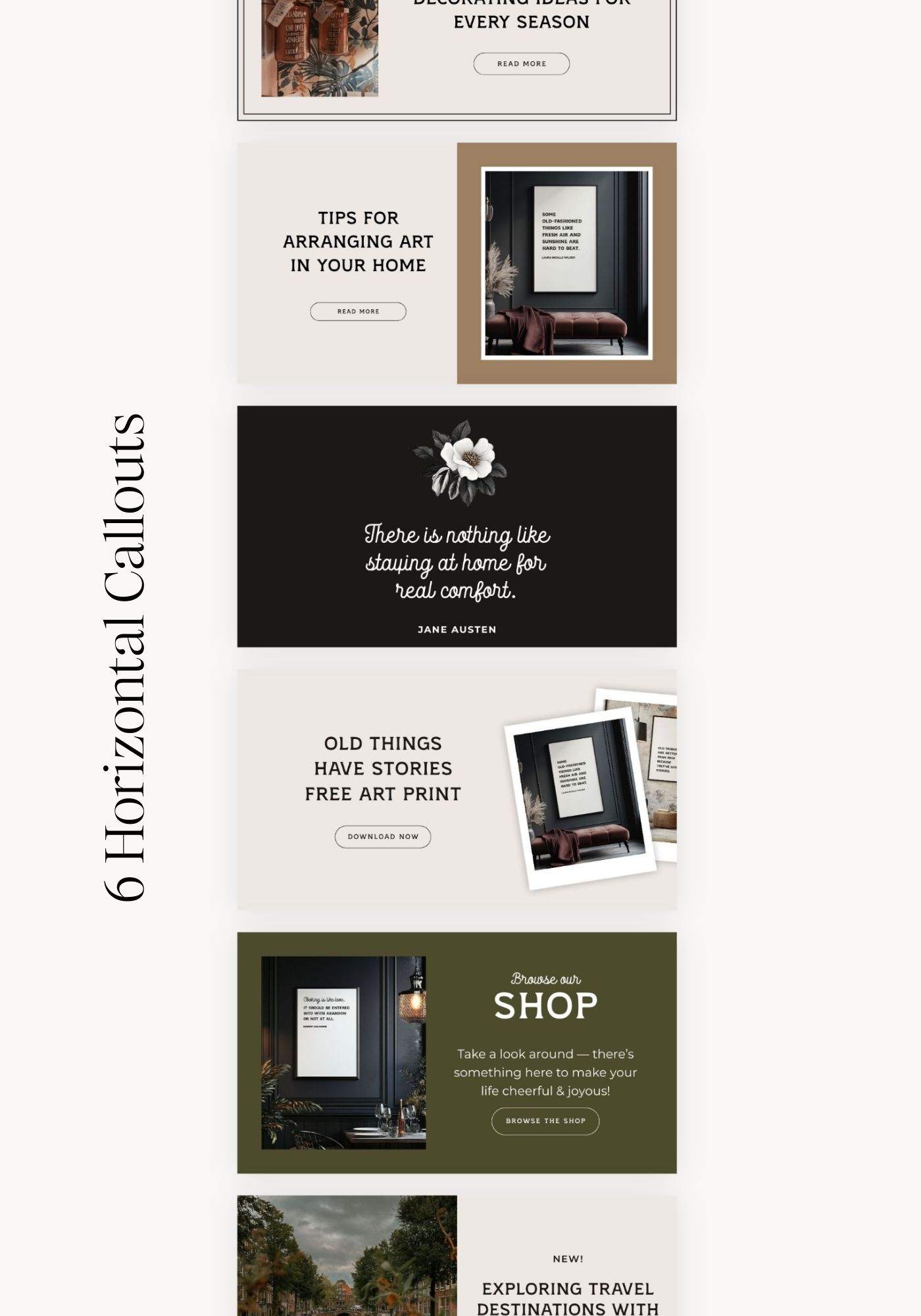 6 Horizontal Callouts – Perfect for highlighting bonuses, reminders, blog posts, or important links.