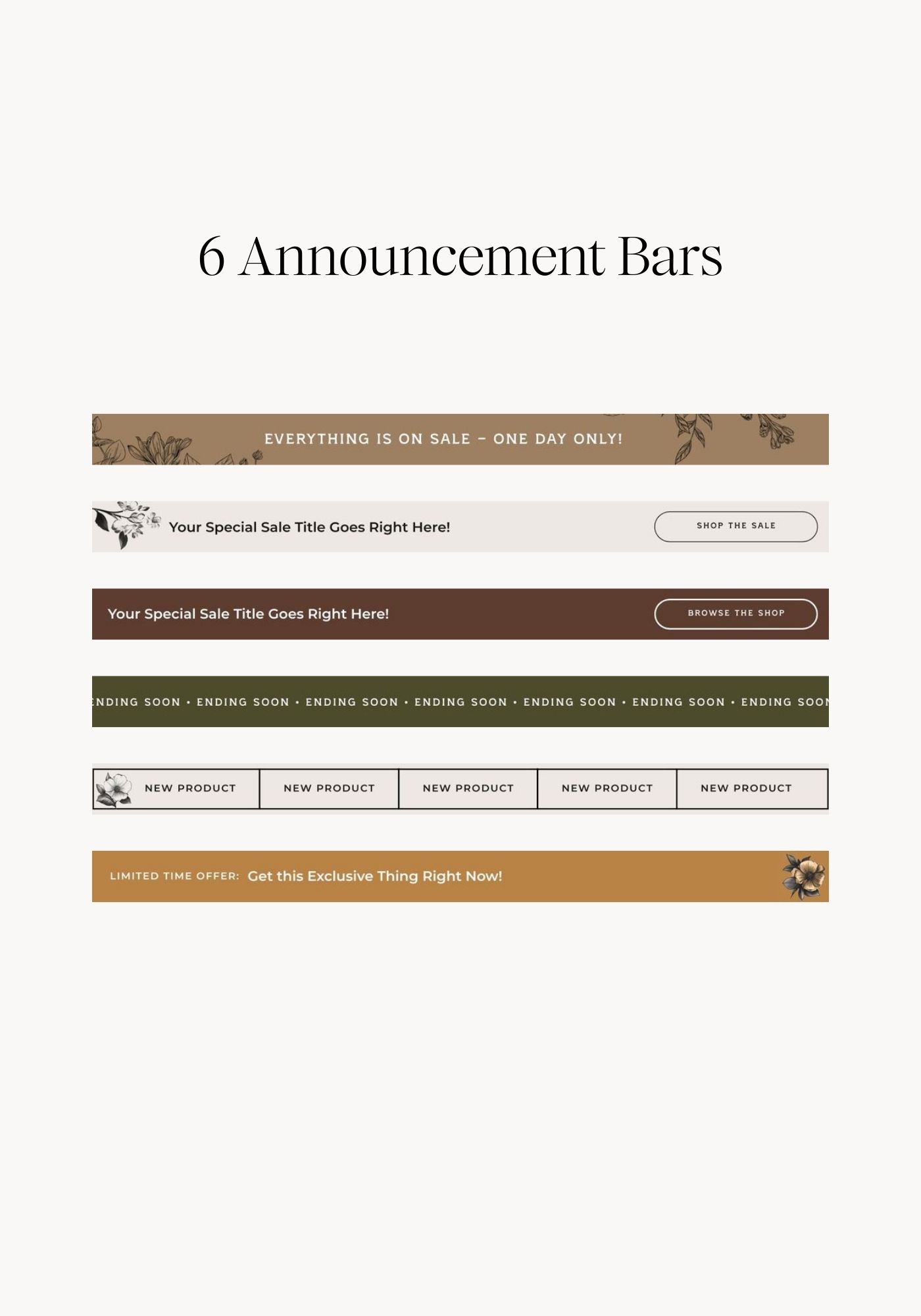 6 Announcement Bars – Grab attention with limited-time offers, updates, and important messages that stand out at the top of your email.